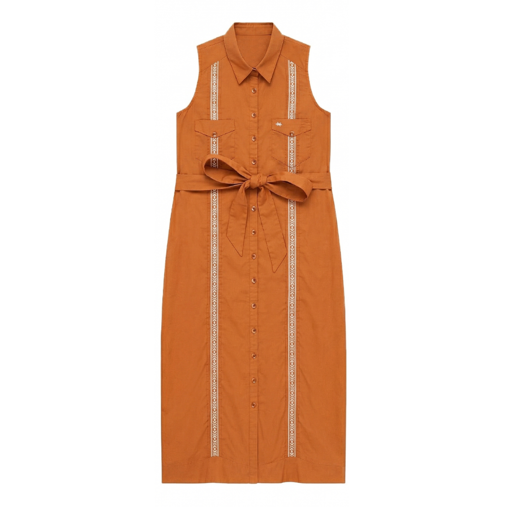 Tejas Guayabera Dress Midi Length - Burnt Orange