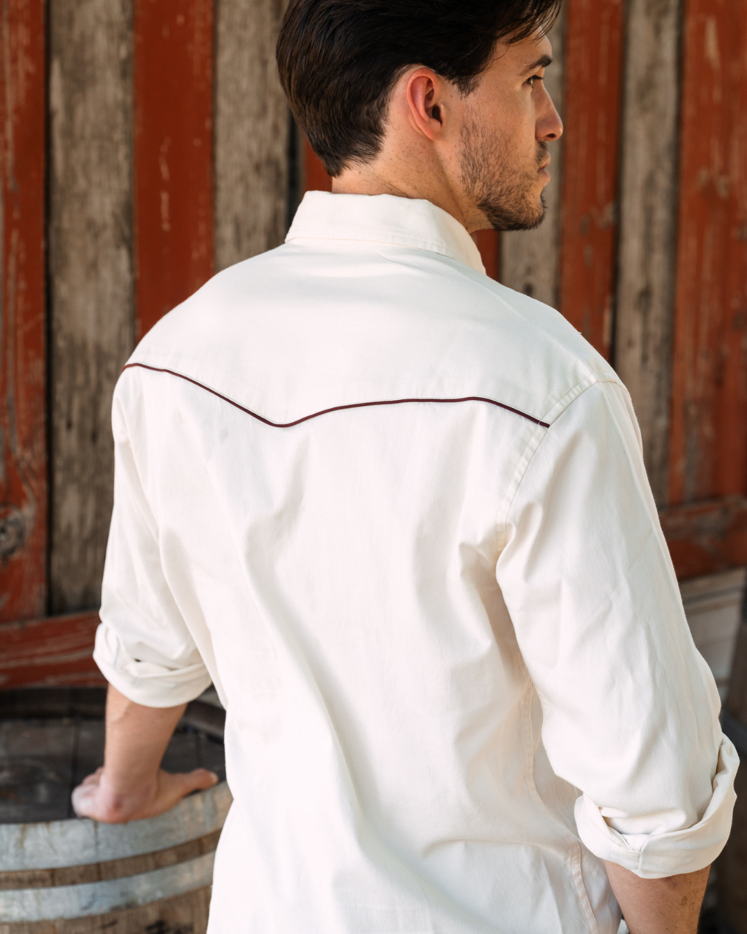 The Ranger Pearl Snap shirt combines classic Western styling with rugged versatility. Made from a durable 99% cotton, 1% spandex blend, it’s tough enough for the field and sharp enough for a night out. Classic construction, pearl snap buttons, and eye-catching piping along the yokes and cuffs bring polish to a work-ready piece. Thanks to the slight stretch, this shirt is breathable, comfortable, and designed to move. In burnt orange, it’s bold, reliable, and unmistakably Texan.
